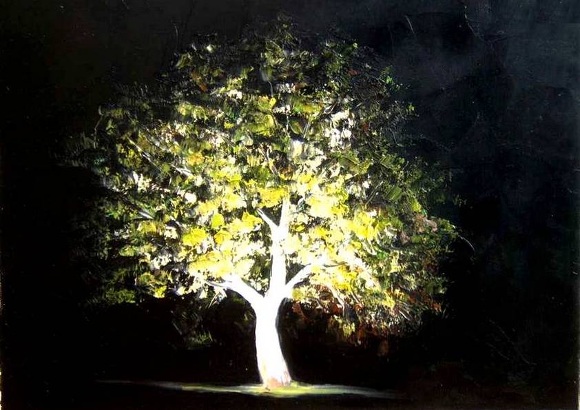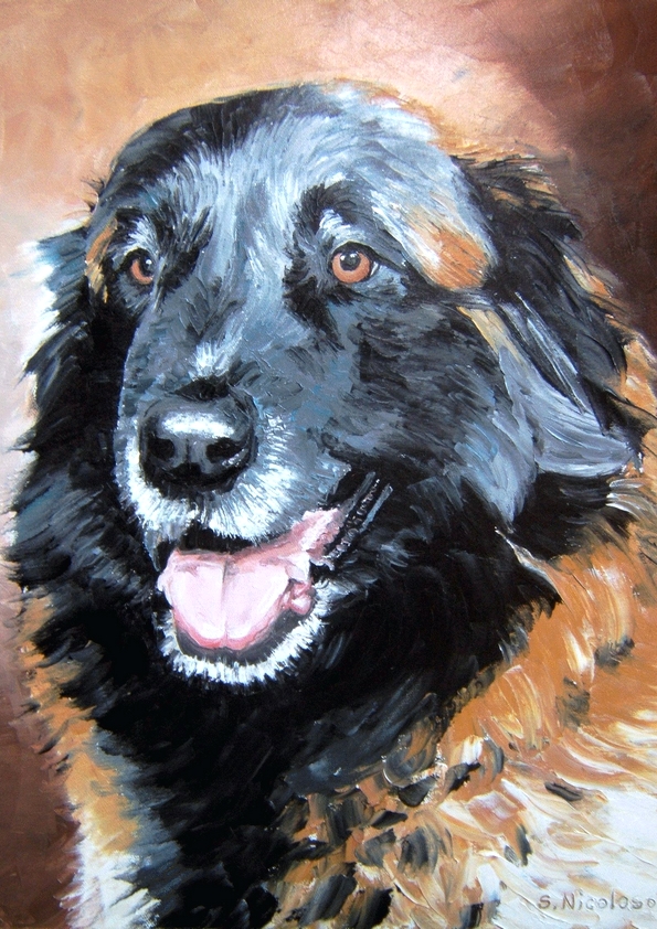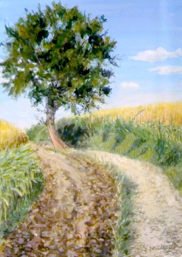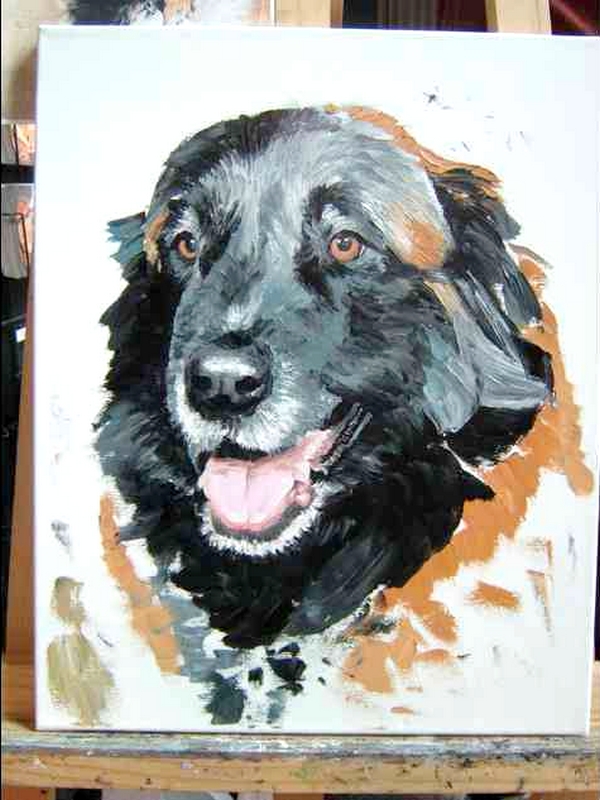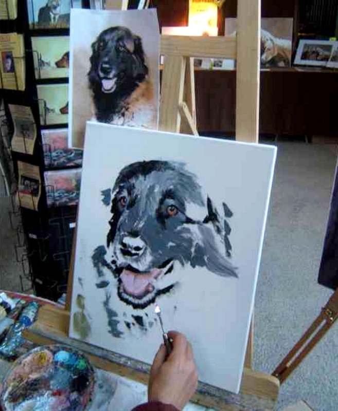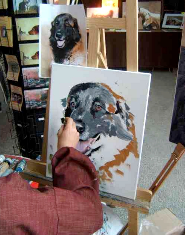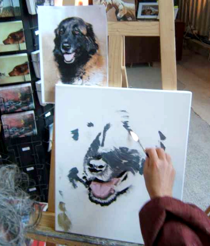 J’apprécie tout particulièrement cette technique, tant pour peindre les paysages que les animaux, car elle permet de travailler dans le détail ou plus librement, de faire de beaux dégradés, de donner des effets de matière – ce qui est intéressant pour le rendu des troncs d’arbres, feuillages, ainsi que des poils des animaux (chevaux, chiens, chats…).