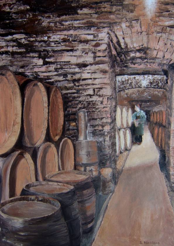 CAVE A VINS . huile couteau AUTRES (33 peintures) | 0 | Peinture vendue à M. PICHON (Roche, France) Peinture vendue en Février 2007 CAVE A VINS (peinture)CAVE A VINS (original) Technique : peinture à l’huile au couteauSupport : toile coton 40 x 60cm