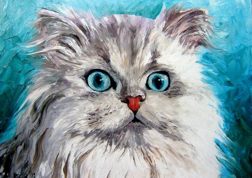 PERSAN BLANC . huile couteau CHATS (33 peintures) | 0 | Peinture vendue ANONYME Peinture réalisée en Janvier 2004 PERSAN BLANC (peinture) Technique : peinture à l’huile au couteauSupport : toile coton 30 x 40cmRace : persan
