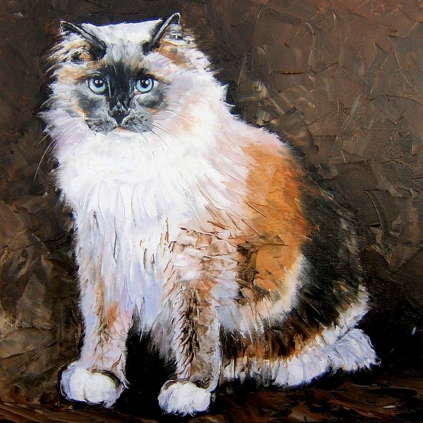» Bonjour Sylvie, La factrice a déposé le colis juste après l’envoi de mon message . Le tableau est magnifique !!! Je ne sais pas comment vous réussissez à peindre le poil des animaux avec la technique au couteau . Le rendu est stupéfiant ! Je suis ravie de mon achat et je vous remercie encore une fois… Je garde vos coordonnées en pensant de les transmettre à des personnes qui pourraient être intéressées pour faire la peinture de leurs chats ou chiens . Bonne journée à vous , cordialement , Tatiana. «
