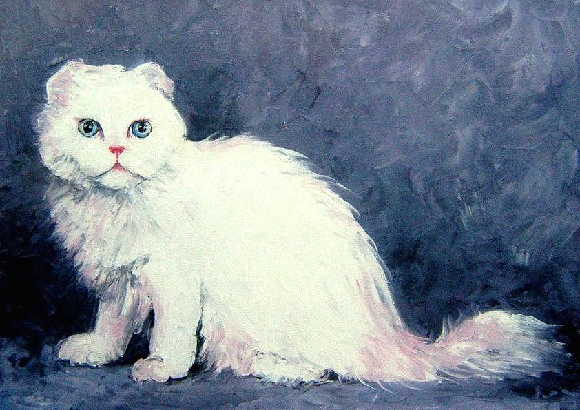 SCOTTISH FOLD . huile couteau CHATS (33 peintures) | 0 | Peinture vendue ANONYME Peinture réalisée en Avril 2008 SCOTTISH FOLD (peinture) Technique : peinture à l’huile au couteauSupport : carton entoilé coton 30 x 40cmRace : scottish fold