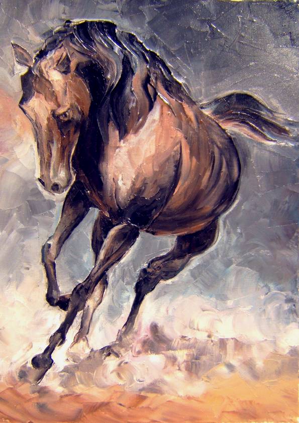 CHEVAL FOUGUEUX . huile couteau CHEVAUX (23 peintures) | 0 | Peinture vendue ANONYME Peinture réalisée en Octobre 2008 CHEVAL FOUGUEUX (peinture)CHEVAL FOUGUEUX (original) Technique : peinture à l’huile au couteauSupport : toile coton 40 x 50cm