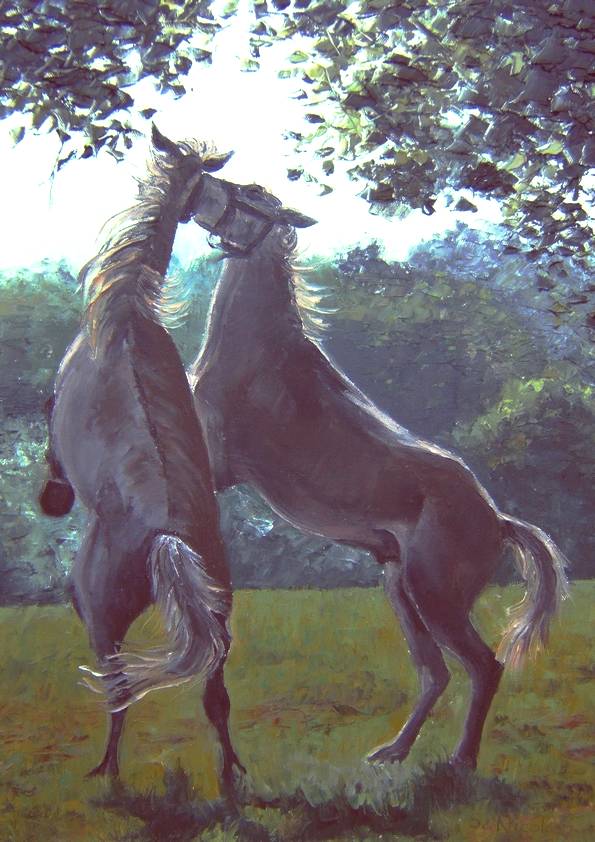 DANSE DES CHEVAUX . huile couteau CHEVAUX (23 peintures) | 0 | Peinture vendue à M. DIDIER (Clermont Ferrand, France) Peinture vendue en Décembre 2016 DANSE DES CHEVAUX (peinture)DANSE DES CHEVAUX (original) Technique : peinture à l’huile au couteauSupport : toile coton 40 x 50cm