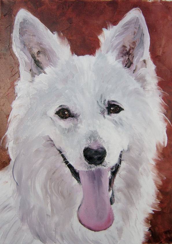 BOCKLIN . huile couteau CHIENS (137 peintures) | 0 | Commande de Mme LASSALLE (Denicé, France) Peinture réalisée en Juillet 2008 BOCKLIN (peinture)BOCKLIN (original) Technique : peinture à l’huile au couteauSupport : toile coton 30 x 40cmRace : berger blanc suisse » Bonsoir, Un grand merci… MME Lassalle «