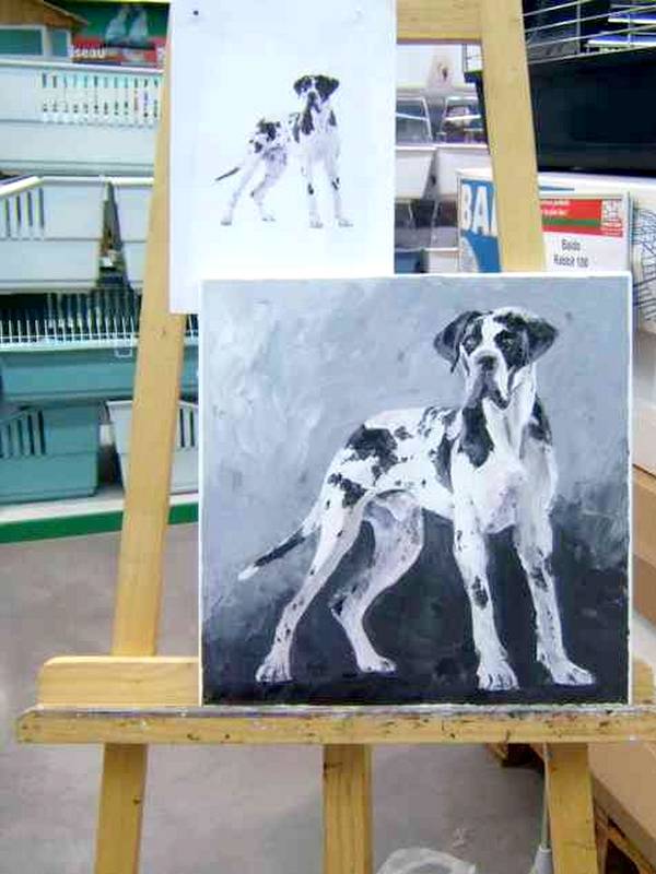 » réalisation d’une peinture pour Rhonaldis / Royal Canin suite à une animation peinture avec quiz canin chez MaxiZoo à l’espace Comboire à Echirolles «