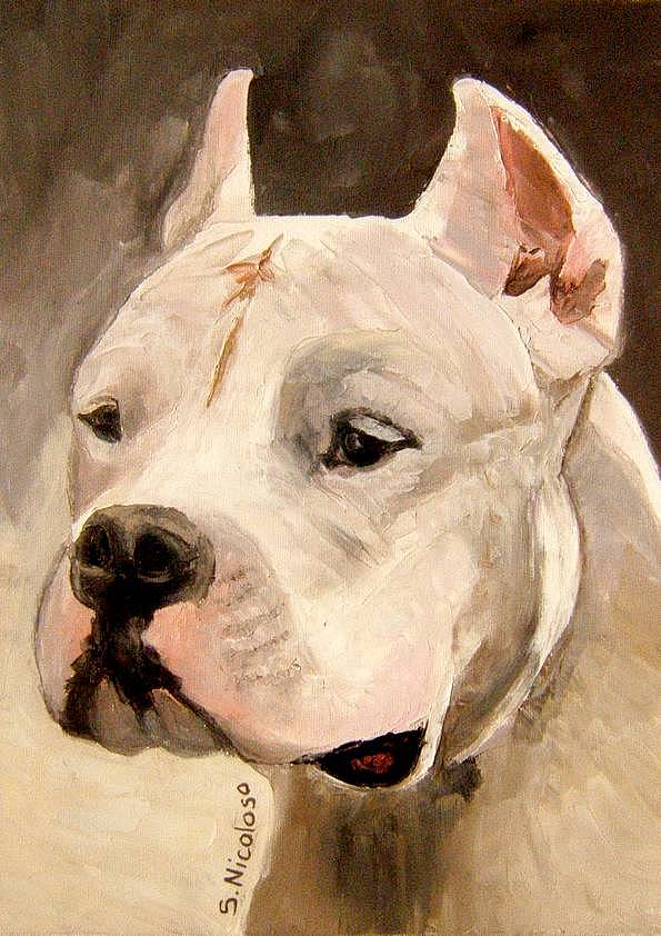 DOGUE ARGENTIN . huile couteau CHIENS (137 peintures) | 0 | Peinture vendue ANONYME Peinture réalisée en Décembre 2007 DOGUE ARGENTIN (peinture) Technique : peinture à l’huile au couteauSupport : toile coton 30 x 40cmRace : dogue argentin