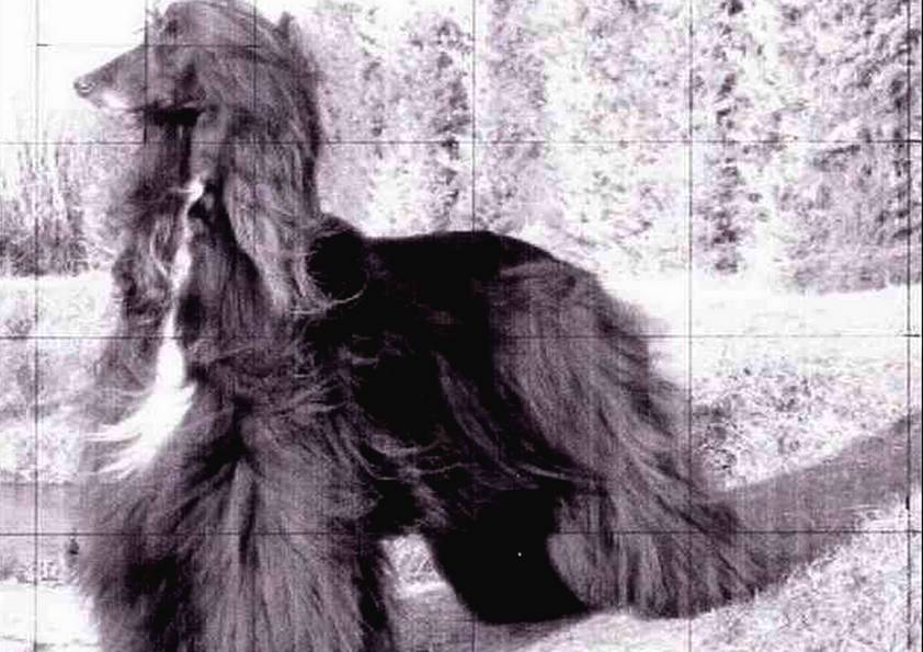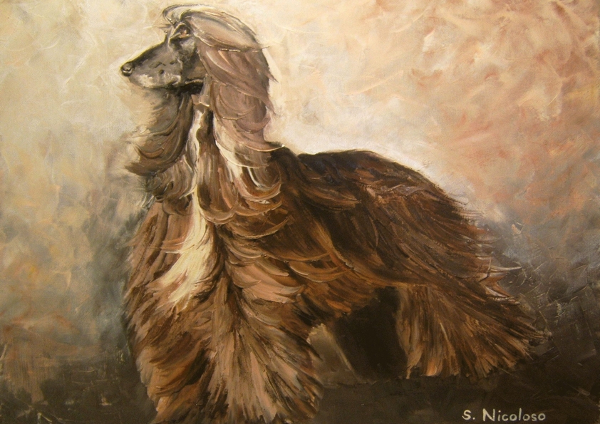 NAOMIE . huile couteau CHIENS (137 peintures) | 0 | Commande de Mme SIMOES (La Destrousse, France) Peinture réalisée en Avril 2007 NAOMIE (peinture)NAOMIE (original) Technique : peinture à l’huile au couteauSupport : toile coton 40 x 50cmRace : lévrier afghan