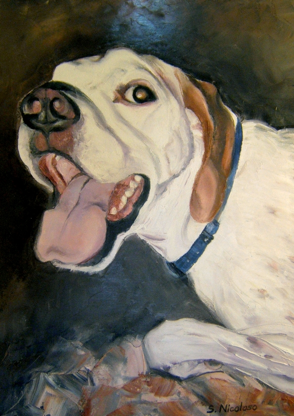 REBELLE . huile couteau CHIENS (137 peintures) | 0 | Commande de M. LUCAS (Domerat, France) Peinture réalisée en Juin 2007 REBELLE (peinture)REBELLE (original) Technique : peinture à l’huile au couteauSupport : toile coton 40 x 50cmRace : pointer
