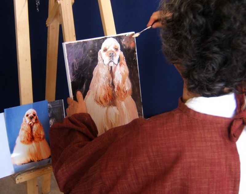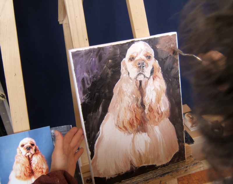» Un client a reconnu son cocker américain à travers ma peinture du père… Félicitations… «