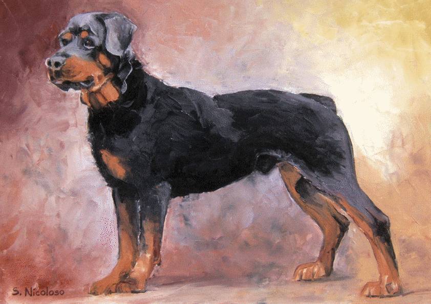 ROTTWEILER . huile couteau CHIENS (137 peintures) | 0 | Peinture vendue ANONYME Peinture réalisée en Août 2007 ROTTWEILER (peinture)ROTTWEILER (original) Technique : peinture à l’huile au couteauSupport : carton entoilé coton 30 x 40cmRace : rottweiler