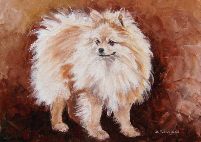 SPITZ . huile couteau CHIENS (137 peintures) | 0 | Peinture vendue à Mme ROUSSEL (St Etienne De Crossey, France) Peinture vendue en Octobre 2008 SPITZ (peinture)SPITZ (original) Technique : peinture à l’huile au couteauSupport : carton entoilé 30 x 40cmRace : spitz