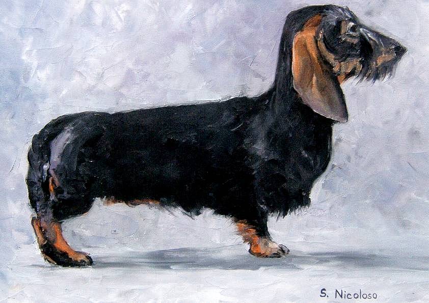 TECKEL . huile couteau CHIENS (137 peintures) | 0 | Peinture vendue à Mme CHOUFFOT (Gensac La Pallue, France) Peinture vendue en Août 2016 TECKEL (peinture) Technique : peinture à l’huile au couteauSupport : carton entoilé coton 30 x 40cmRace : teckel