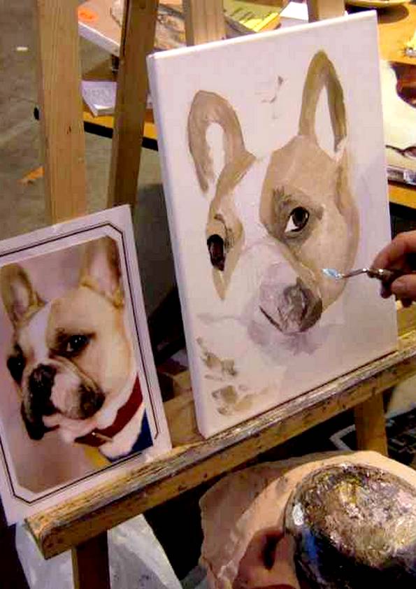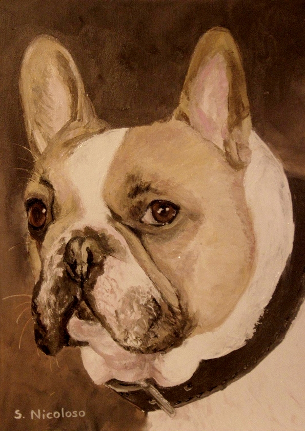 TOTO . huile couteau CHIENS (137 peintures) | 0 | Commande de Mme FETAUD (Novalaise, France) Peinture réalisée en Mars 2007 TOTO (peinture)TOTO (peinture) Technique : peinture à l’huile au couteauSupport : toile coton 30 x 40cmRace : bouledogue français