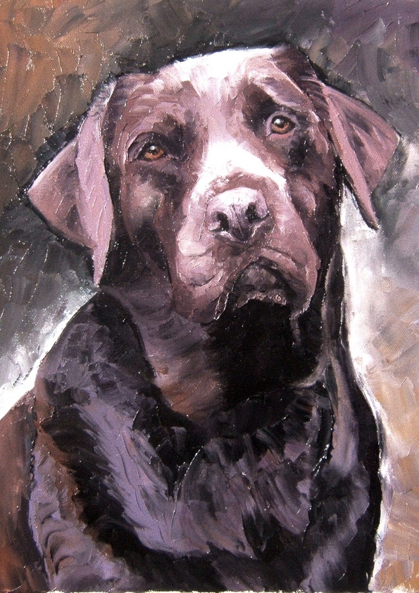 » Bonsoir, Vous pouvez enlever le collier et la médaille, merci ! » – » Merci pour la photo du tableau, on retrouve bien le regard de notre chienne labrador. Je vous envoie le chèque ce jour. «