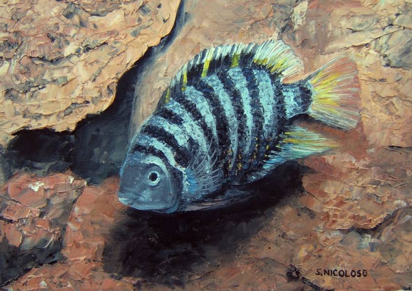 ABUDEFDUF . huile couteau FAUNE (30 peintures) | 0 | Peinture vendue à Mme DUMAS (Toulouse, France) Peinture vendue en Novembre 2007 ABUDEFDUF (peinture) Technique : peinture à l’huile au couteauSupport : chassis entoilé coton 30 x 40cmEspèce : abudefduf (sergents majors)