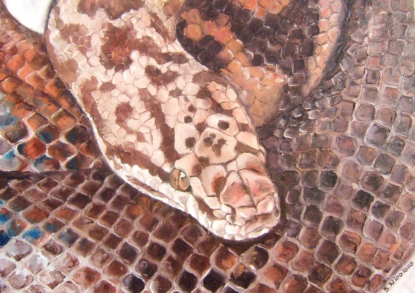 ANTARESIA MACULOSA . huile couteau FAUNE (30 peintures) | 0 | Peinture vendue ANONYME Peinture réalisée en Décembre 2014 ANTARESIA MACULOSA (peinture)ANTARESIA MACULOSA (original) Technique : peinture à l’huile au couteauSupport : carton entoilé coton 30 x 40cmEspèce : python tacheté / serpent