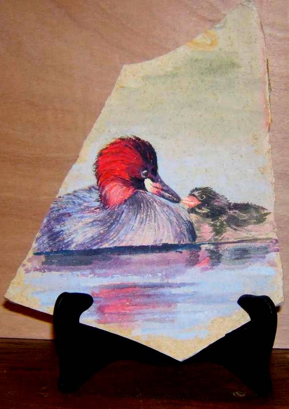 CANARD & CANETON . gouache FAUNE (30 peintures) | 0 | Peinture vendue ANONYME Peinture réalisée en septembre 2006 CANARD & CANETON (gouache) Technique : peinture à la gouacheSupport : ardoise naturelle
