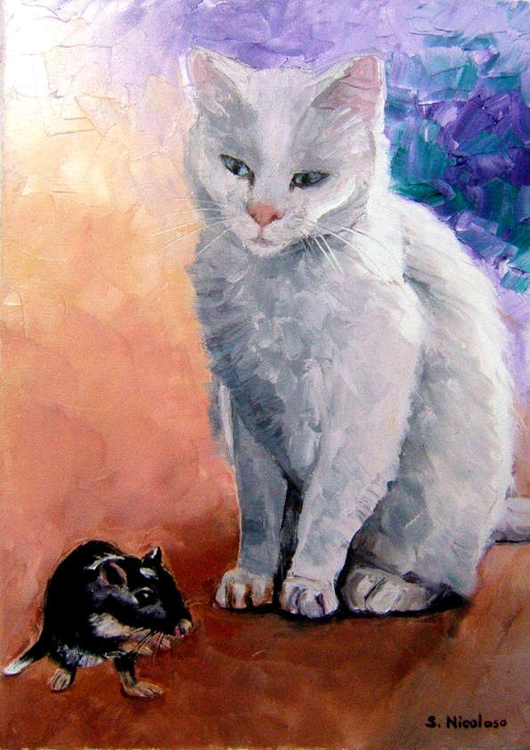 » Suite à notre conversation téléphonique , je vous demande de réaliser le tableau à l’huile en 30 /40 cm selon votre premier montage ( gerbille debout sur ses pattes ). » – » Vraiment , je suis enchantée par votre réalisation , cela semble parfait ! Je pense qu’il en sera de meme pour ma fille le jour de son anniversaire ! » – » Nous avons bien reçu le tableau . Merci d’avoir aussi bien réalisé les deux petits compagnons de notre fille… Bonne continuation ! «