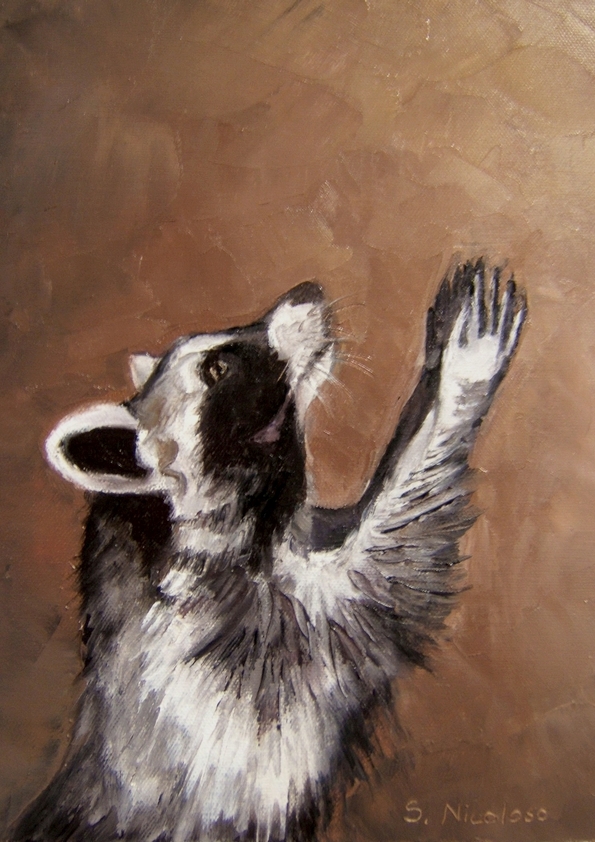 RATUS . huile couteau FAUNE (30 peintures) | 0 | Commande de Mme BARONI (St Odiol, France) Peinture réalisée en Novembre 2008 RATUS (peinture)RATUS (original) Technique : peinture à l’huile au couteauSupport : toile coton 30 x 40cmEspèce : raton laveur
