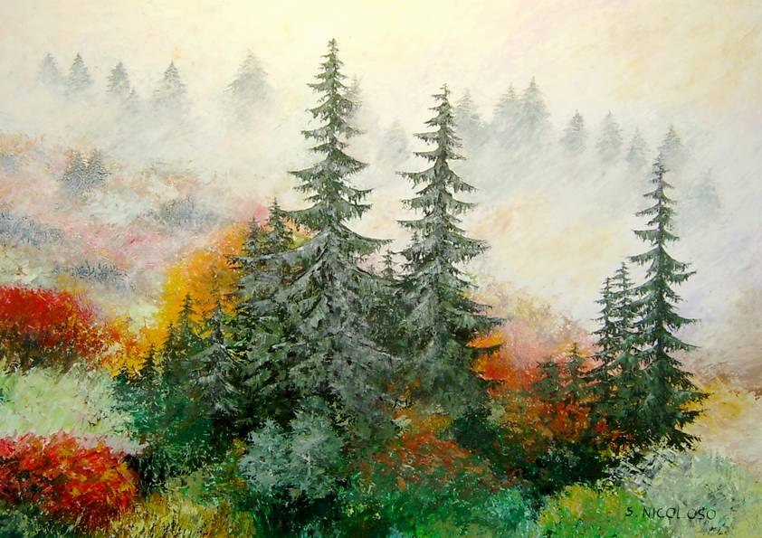 FORÊT SOUS LA BRUME . huile couteau NATURE (39 peintures) | 0 | Peinture vendue aux Enchères organisées par l'ARG à M. et Mme TORRES (Argelès, France) Peinture vendue en Septembre 2006 FORÊT SOUS LA BRUME (peinture) Technique : peinture à l’huile au couteauSupport : chassis entoilé coton 60 x 80cm