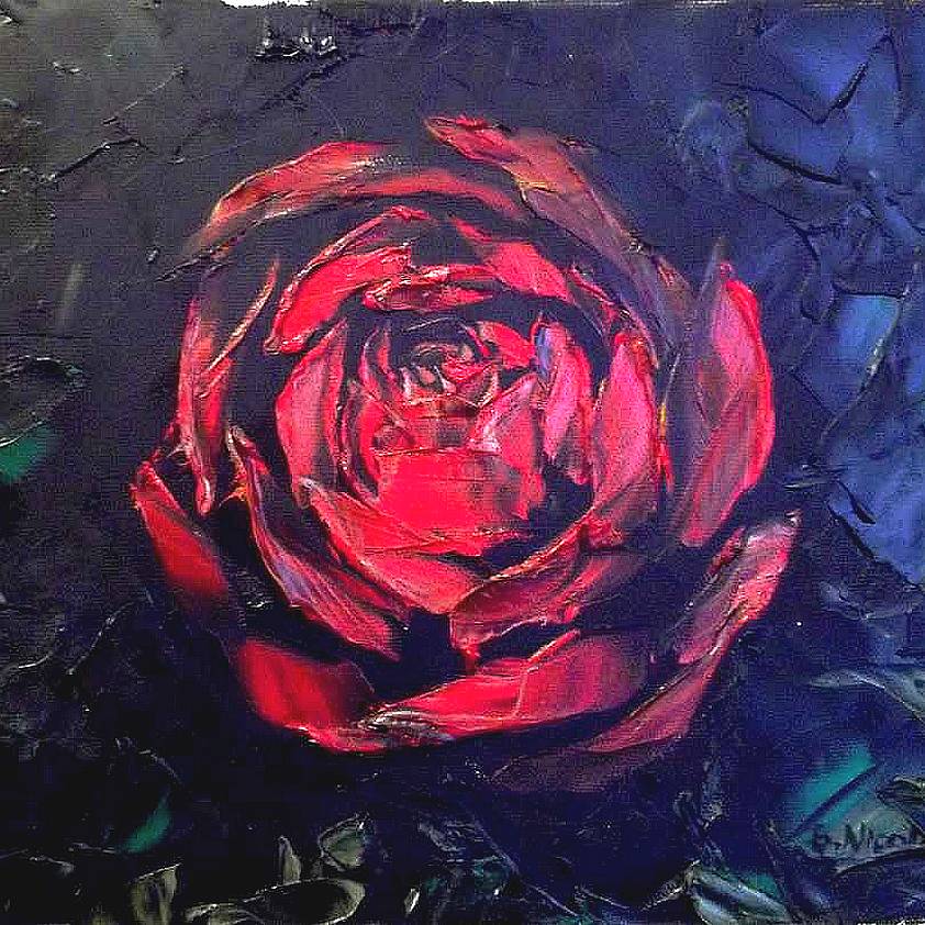 ROSE . huile couteau NATURE (39 peintures) | 0 | Peinture vendue à Mme LUROT (Montelier, France) Peinture vendue en Mai 2017 ROSE (peinture) Technique : peinture à l’huile au couteauSupport : toile coton 24 x 30cm
