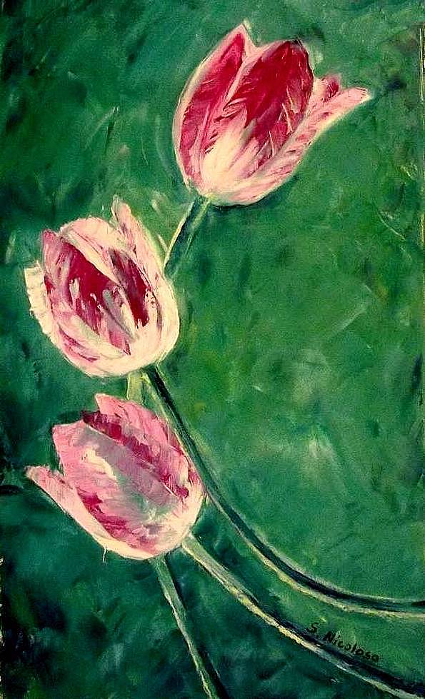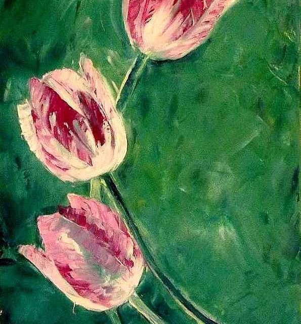TULIPES . huile couteau NATURE (39 peintures) | 0 | Peinture vendue ANONYME Peinture réalisée en Août 2017 TULIPES (peinture) Technique : peinture à l’huile au couteauSupport : toile coton 27 x 46cm