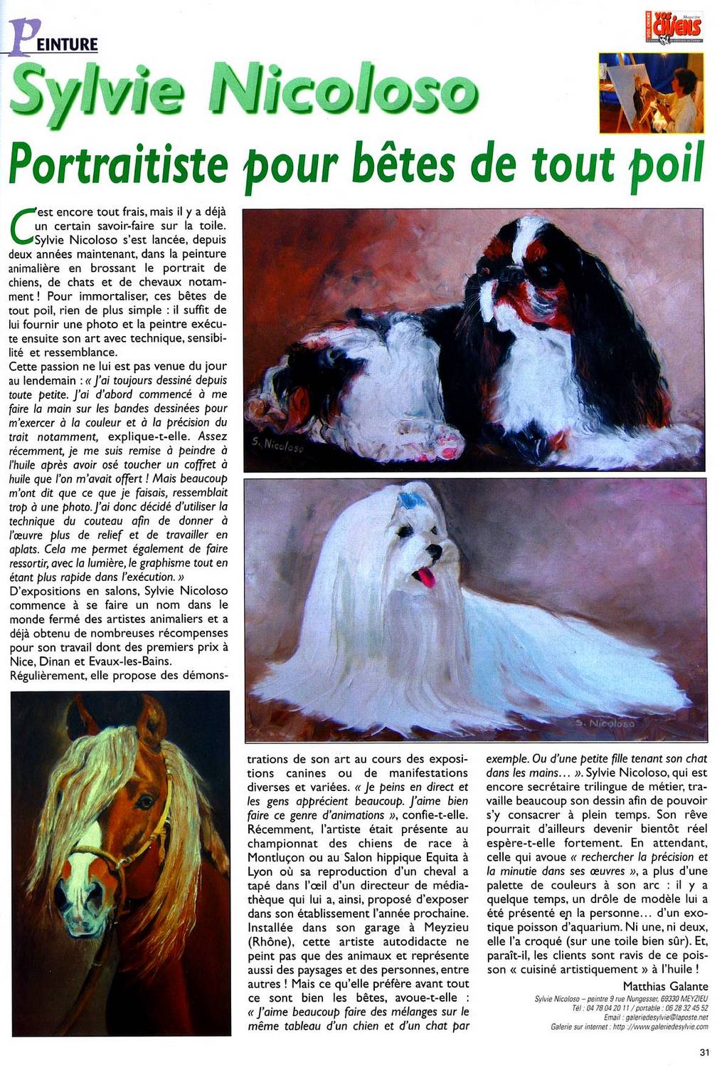 De plus, Sylvie Nicoloso était présente lors du championnat de France des chiens de race à Montluçon les 5, 6 et 7 mai derniers. Elle a ainsi obtenu des commandes de la part de membres de la Société Centrale Canine du Bourbonnais, de juges et de propriétaires de champions.