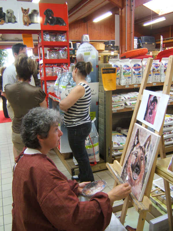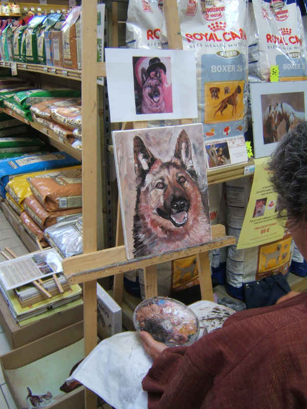» J’ai pu participer, en tant que peintre animalier à une animation lots d’un défilé de chiens en partenariat avec BOTANIC et ROYAL CANIN à Metz Tessy vers ANNECY «