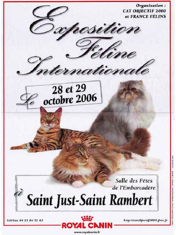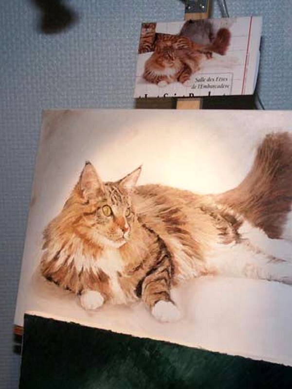 » J’ai pu participer, en tant que peintre animalier, à la 1ère édition de l’expostion féline internationale avec CAT OBJECTIF 2000 et FRANCE FELINS à St Just St Rambert près de St Etienne… de nombreux champions PERSANS étaient présents : Persans Chinchillas Silvers, Goldens & Smokes… prêts à concourir «